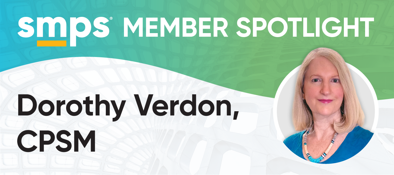 In our member spotlight, Dorothy Verdon, CPSM, recently sat down for a virtual chat with SMPS. Dorothy, who’s owner of Bright Bunny Communications, has been in the A/E/C industry since