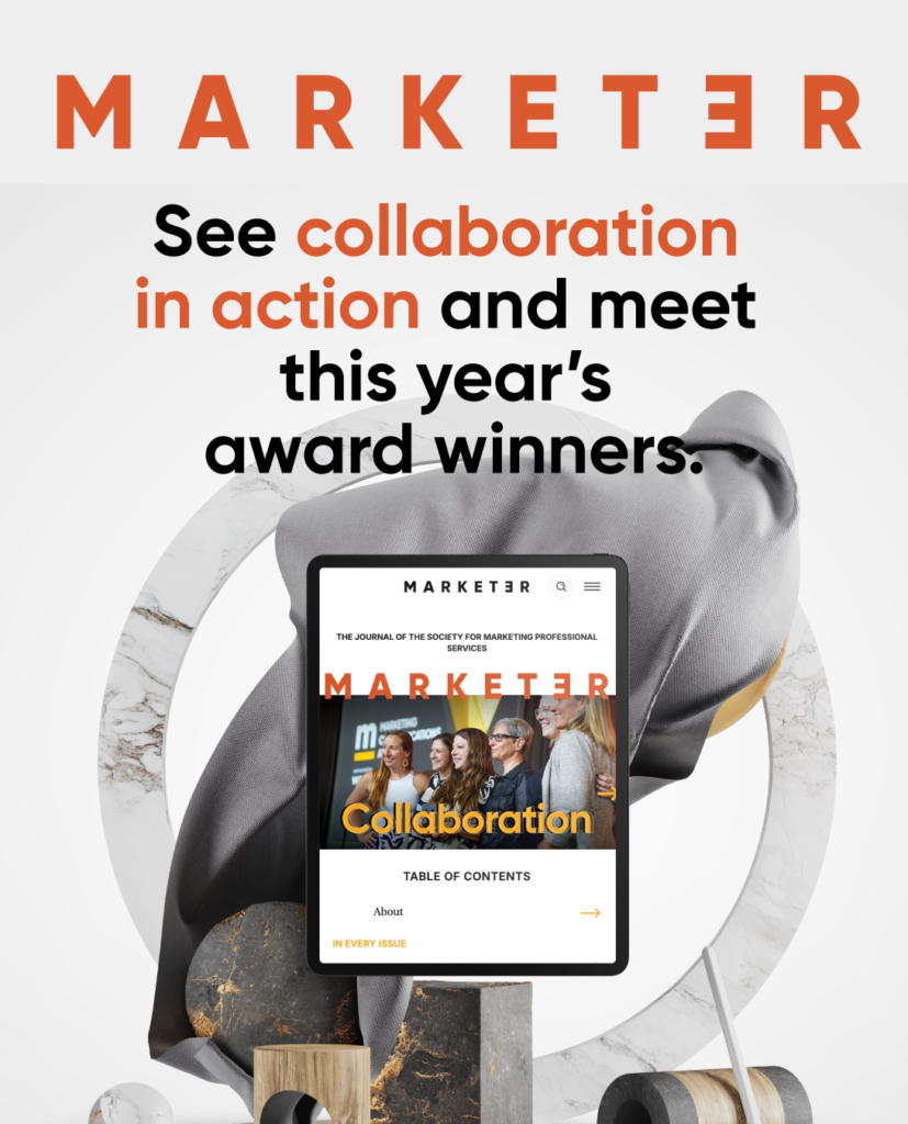© Marketer, The Journal of the Society for Marketing Professional Services. For sharing on social media, please tag the official SMPS accounts @SMPSHQ, and use the following hashtags #SMPSMarketer #SMPS
